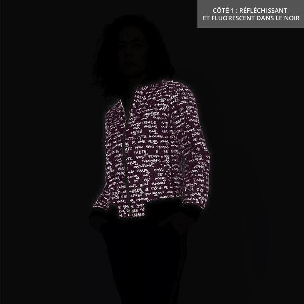 Bomber vélo réversible et imperméable 2 en 1 : bomber fluorescent et réfléchissant jusqu’à 150m idéal pour vos déplacements à vélo ; retournez-le et il devient un bomber moderne et looké.