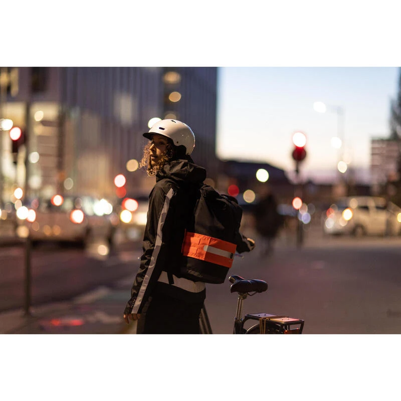 Vous cherchez à augmenter votre visibilité arrière lorsque vous portez un sac à dos à vélo? Optez pour ce bandeau fluo et restez visible jour et nuit.Cet accessoire de visibilité simple et efficace s’accroche facilement par bandes auto-aggrippantes sur votre sac à dos.