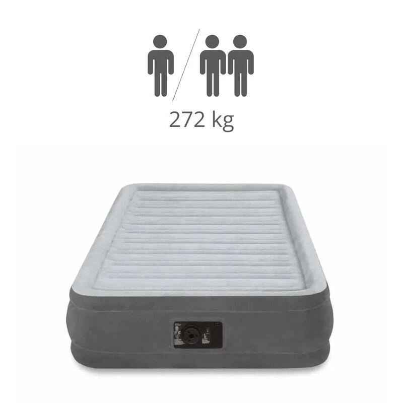 L’Intex Comfort-Plush ‘Queen’ en combinaison avec le kit de rĂ©paration. Dans le cas peu probable d’un trou dans le lit gonflable, celui-ci peut ĂŞtre rĂ©parĂ© rapidement et facilement.