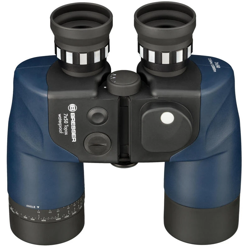 Jumelles étanches à usage maritime avec boussole illuminée.