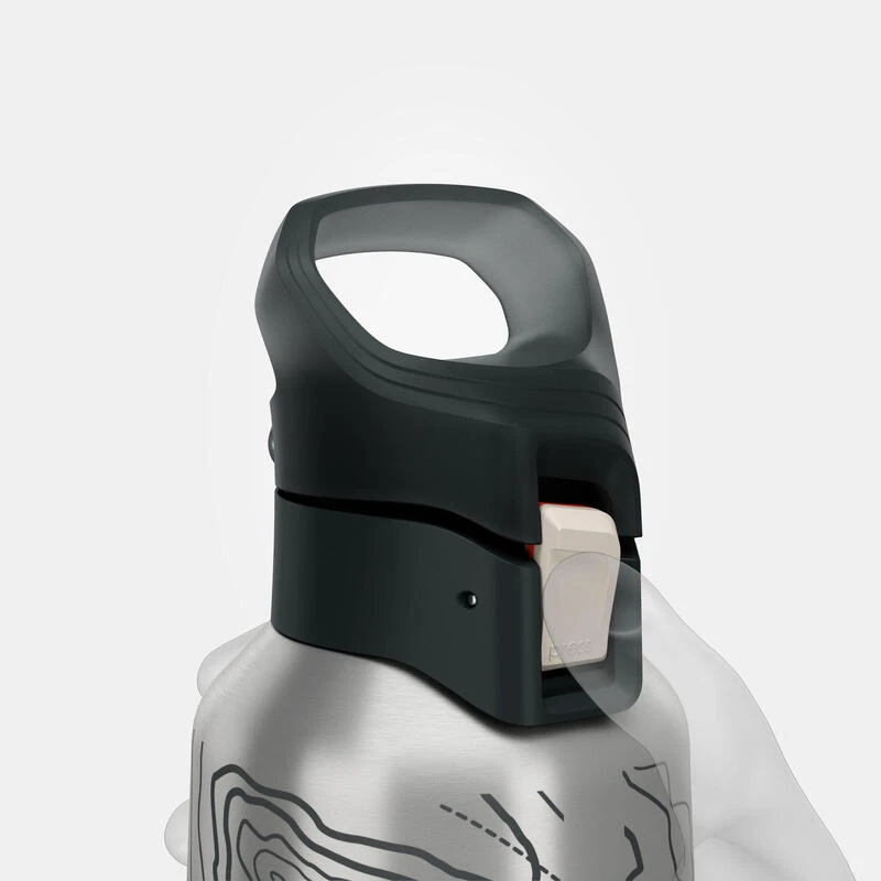 Besoin de conserver vos boissons chaudes ou froides pendant plusieurs heures ? Nos concepteurs ont développé cette bouteille en inox légère, solide et isolante.Pour cette gourde isotherme avec bouchon à ouverture rapide verrouillable (0,8 L), une partie des bénéfices est reversée à des associations œuvrant pour la protection de l’environnement.