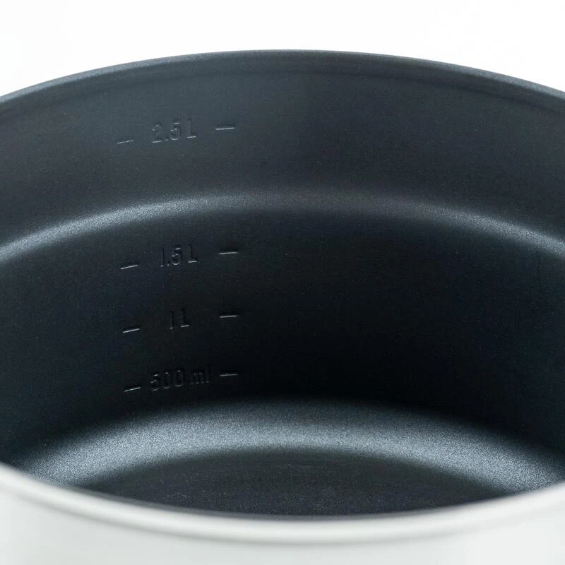 1 casserole graduée avec 2 poignées repliables. (2,6 L utile, 3,1 L total, 530 g, Ø 23 cm x 11 cm)