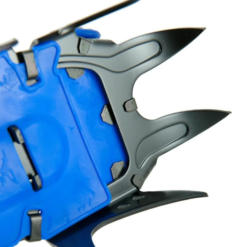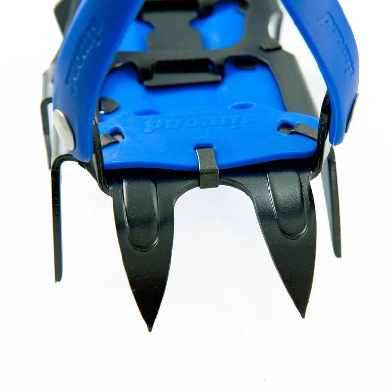 – Crampons Ă 12 pointes: 2 pointes avant, 7 pointes latĂ©rales, 3 pointes de retenue.