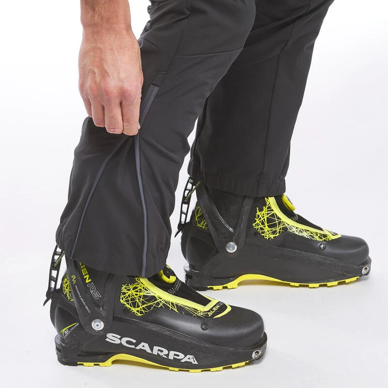 – Soufflet bas de jambe pour positionner le pantalon sur les chaussures de montagne ou les chaussures de ski (fermeture zippée)